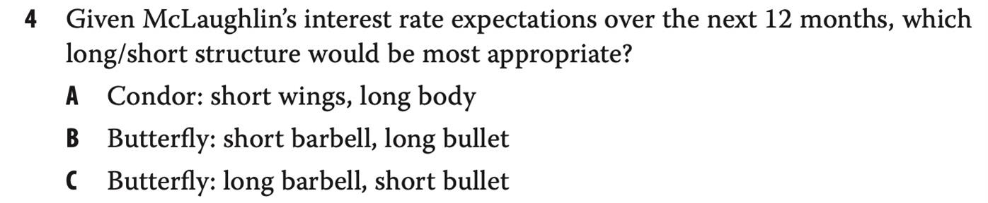 P231 practice problem这里,是不是condor如果改成long wing short body就可以了?这样的condor和选项C中的butterfly就是差不多性质了吧,除了一个是四个头寸,一个是三个头寸外