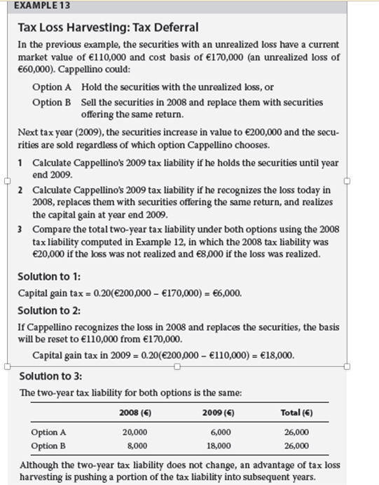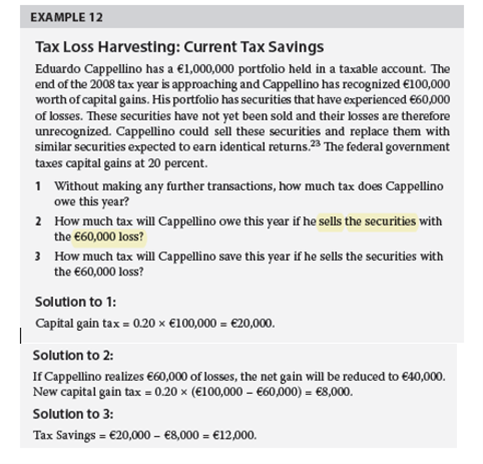 老师,29章课后题21题“suppose DiCenzo sells the securities in the current tax year and replaces them with securities having the same returns. He will then sell the new securities in the next tax year.” 您能详细解释这句话吗?这个投资者当年卖掉了亏损的股票但是与此同时用一个收益相同的股票替代了它,那么这个时候unrelized loss就是0吗?