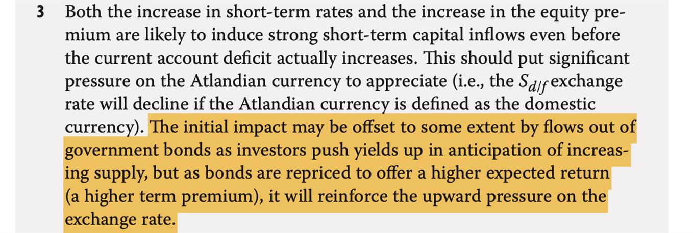 已回答P265 Example8 Q3 没看懂标黄的这句话啥意思。是不是说外资流入使货币升值,一开始的时候能被外资卖出该国债券所抵消(收益率升高,价格下跌),但是随着债券期望收益率继续升高,外资会继续流入购买该国债券,反而会使exchange rate进一步上升。(请老师先说一下我的理解是否正确,不要丢一段解释给我,我还要花好长的一段时间去消化理解和对照,谢谢)