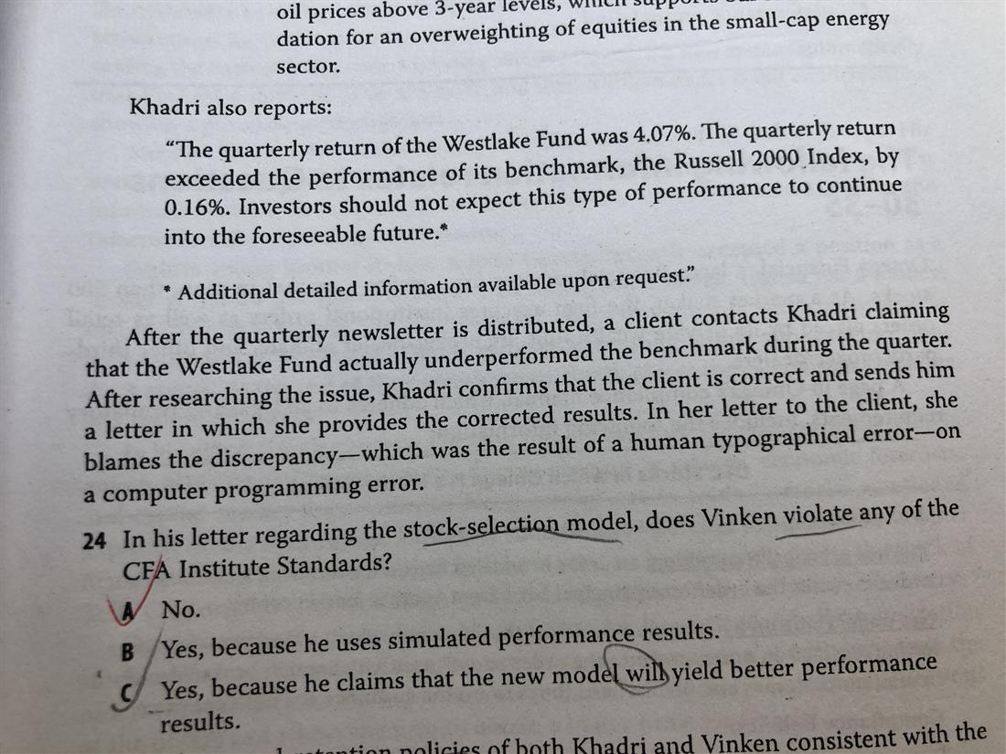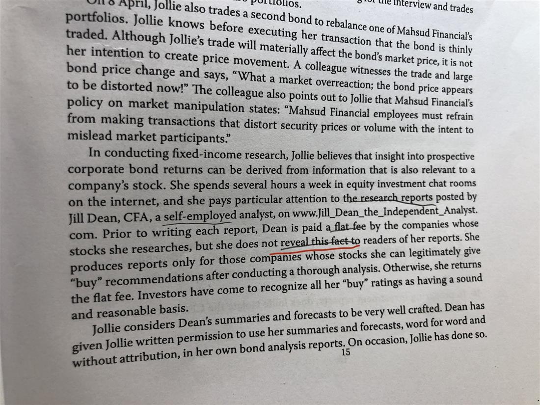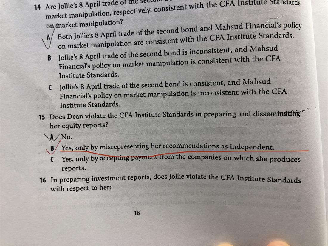 老师您好,我想问一下这个道题DEAN violate the standard 是因为没有给clients说he is paid a flat fee吗?选项B 为什么说DEAN misrepresent her recommendation as independent。我感觉DEAN 做得挺好,没什么错。谢谢