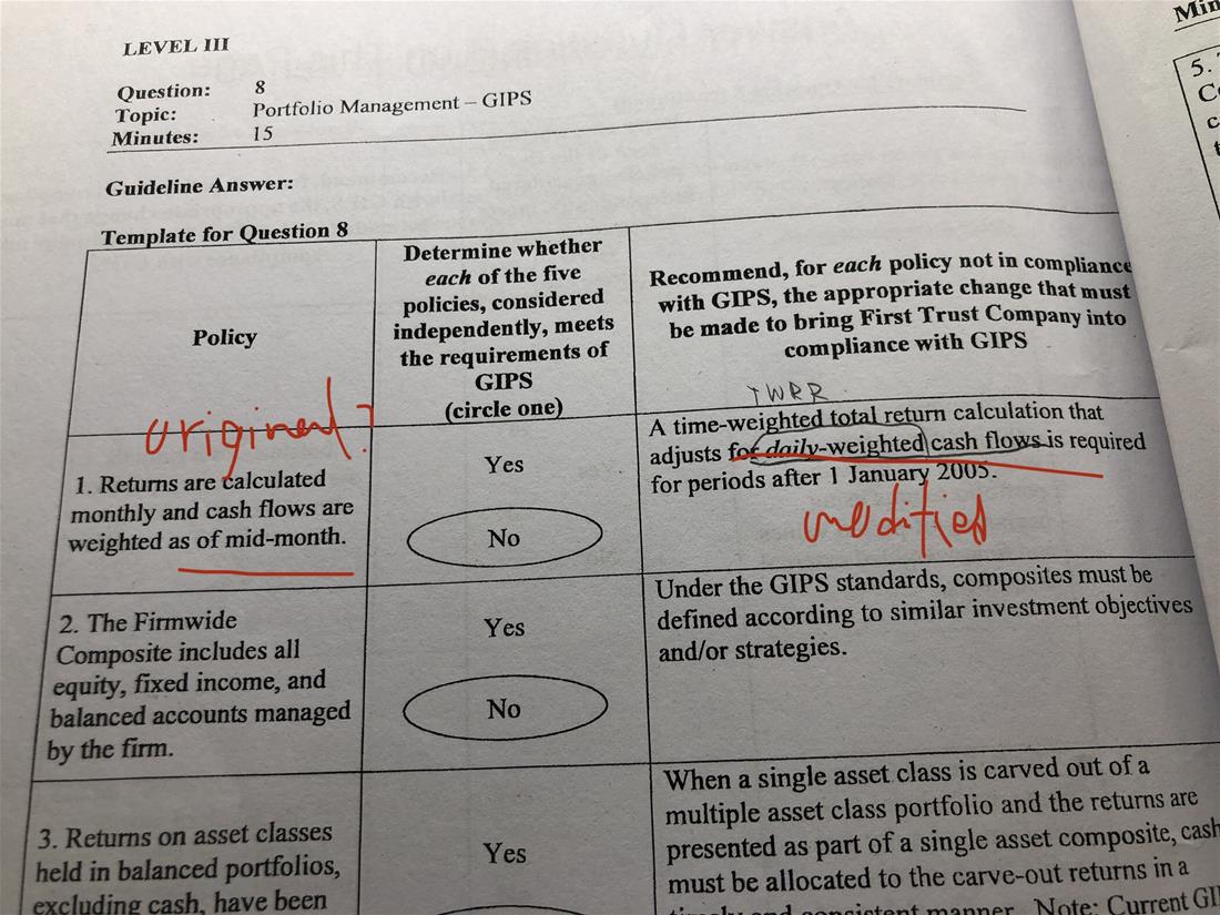 老师您好,这是GIPS上午题,我想问一下这个daily-weighted cash flows 是什么意思是modified dietz 吗?policy 里面cash flowed are weighted as of mid-month 是original dietz吗?算TWRR是不是有external cash flow才算superiod return, 然后复利起来。 但是讲义里算TWRR是先算daily return 然后复利成monthly return 然后复利成quarterly return,最后复利成year return.所以我觉得跟TWRR有large external cash flow再算sub period return有点冲突。 而且这里daily-weighted cash flow,我也不知道是讲的是modified dietz还是TWRR?谢谢