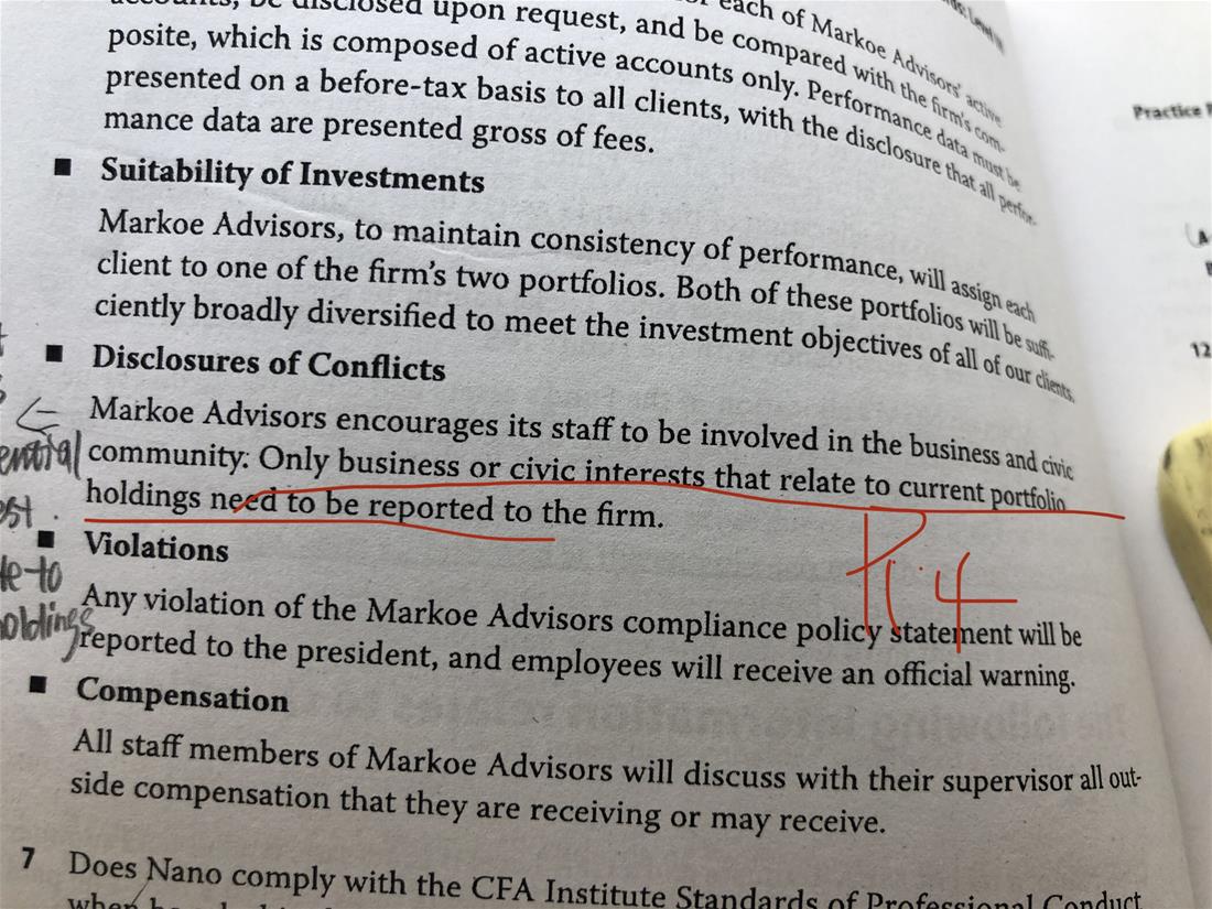 已回答老师您好,答案说还有其他conflicts of interest需要disclose, not only related to portfolio holding,我不知道除了关于portfolio 还有什么其他conflicts of interest呢?谢谢
