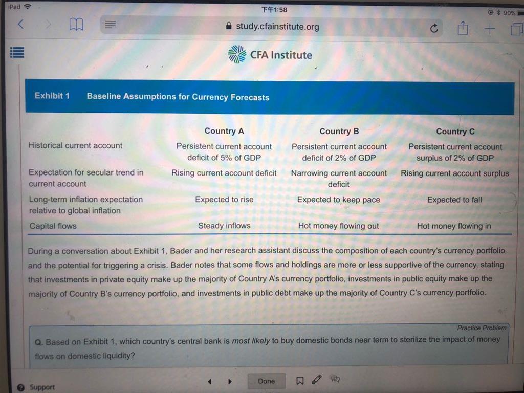 - 第5题,从经济学公式X-M=(S-I)+(T-G)来看,如果经常账户赤字增加,不是意味着该国投资大于储蓄,或政府支出大于税收么,那么整体环境应该是好的,应该有利于资本的流入吧?为什么答案是反过来去赤字减少或盈余的国家呢?