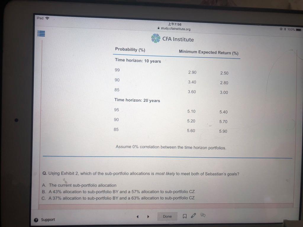 已回答老师,第二题中b选项hedge fund为什么不对?statement 2 说的是要增加收益率达到5.5%的概率,我的理解是现在的收益率不够,所以要增加收益率,但我没有从题目中看到收益率越大越好。相反hedge funds的risk比private equities要低, 收益比bonds要高,算是一个比较好的平衡点。