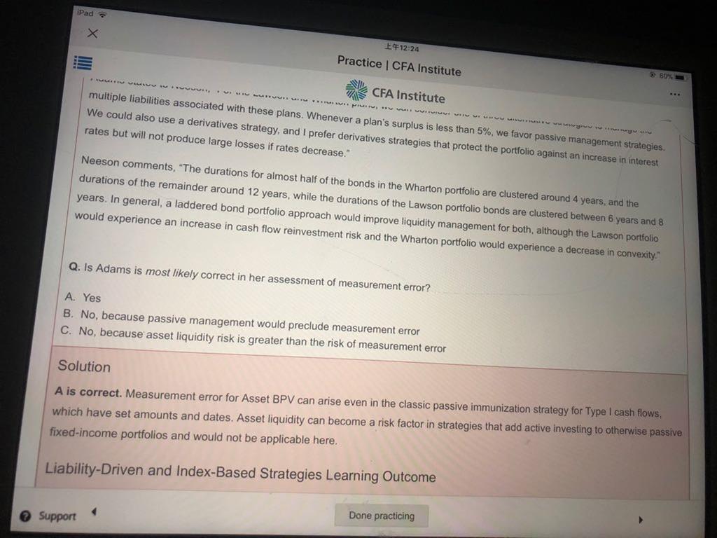 老师,这题我完全不知道说什么。measurement error 是什么?和被动投资有什么关系?liquidity risk不是指手上没钱了,margin call来的时候无法应对吗?
