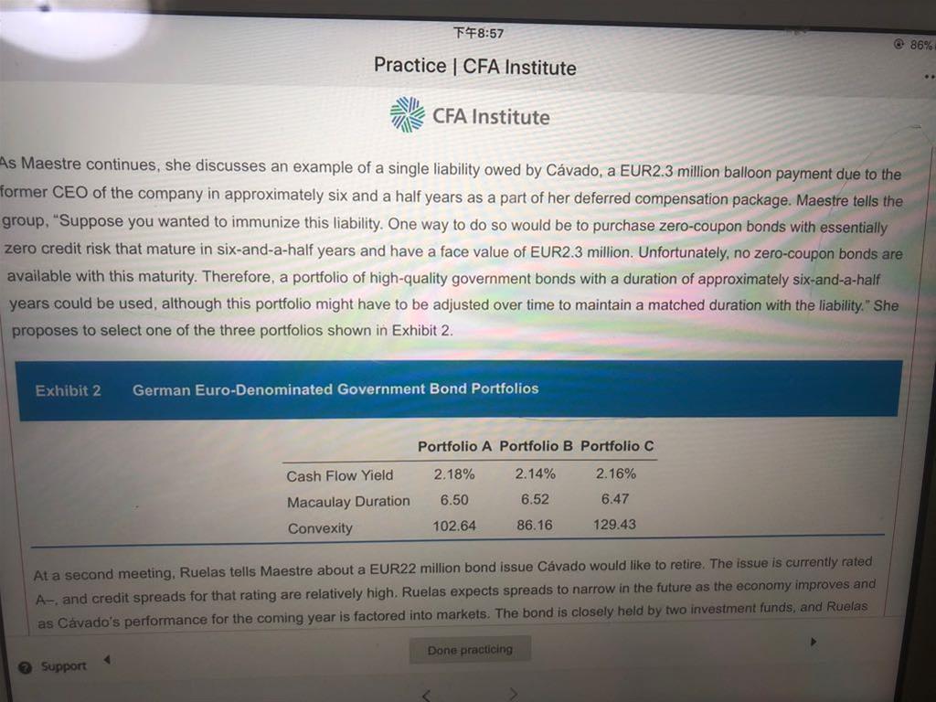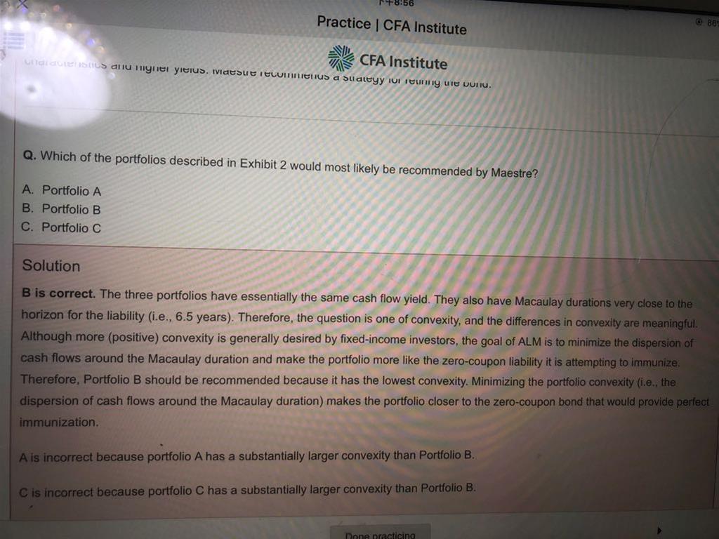 我只有一个疑问,就是选择b的话,它的麦考利久期比负债长,这样负债到期时,手上没钱兑付啊,这样没问题吗?所以我才选a