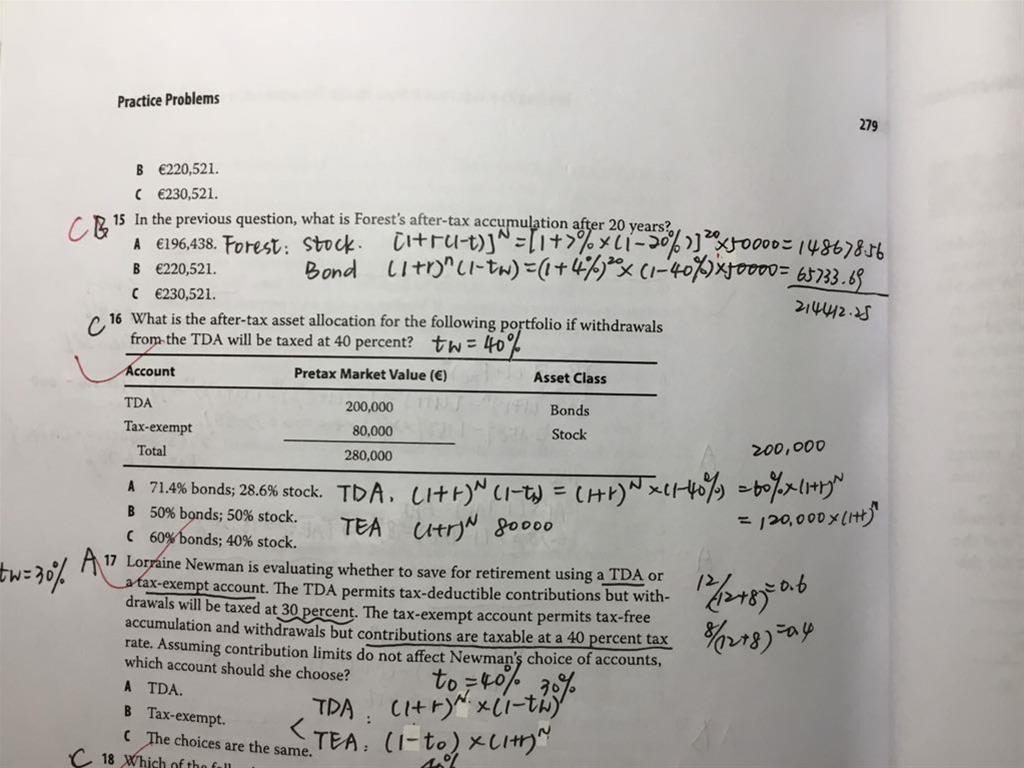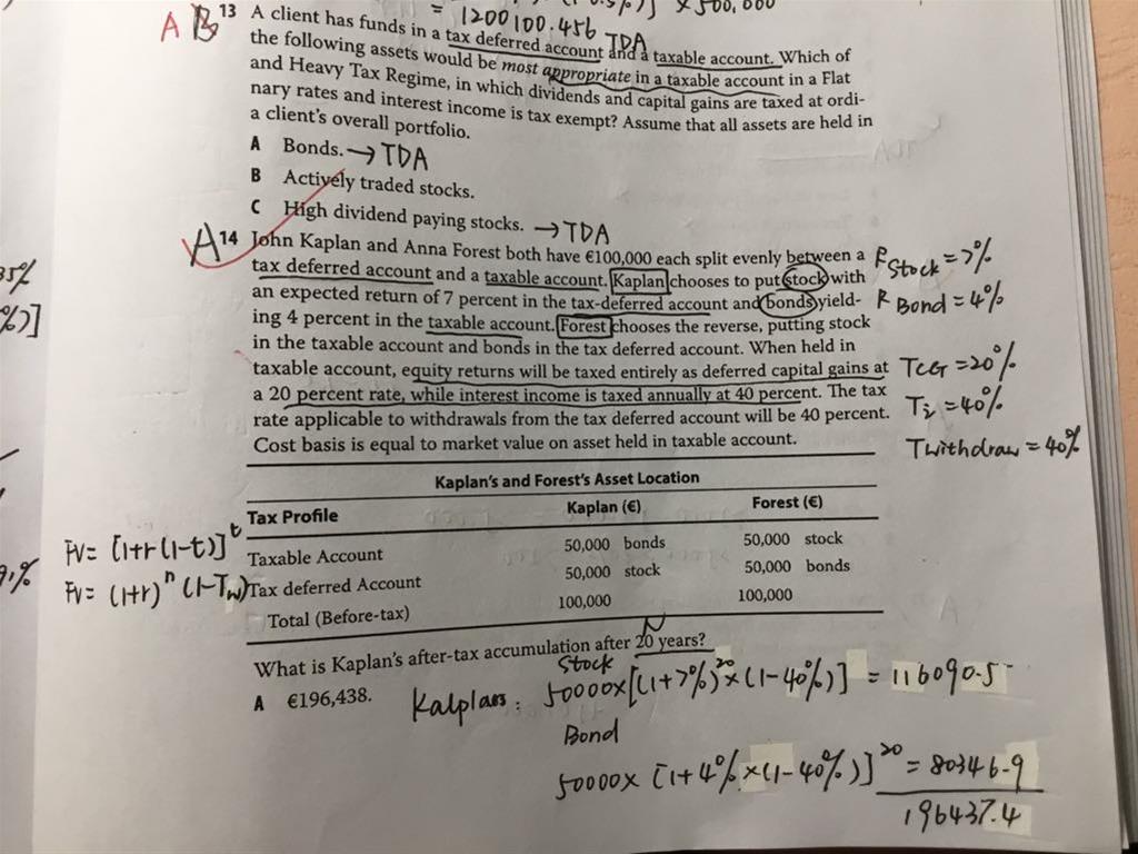 14和15题中,Taxable account 对于bond和stock在计算的时候用的公式不用,bond用的是accrual taxation的计算公式,stock用的是deferred capital gain tax计算公式,是规定这样吗?这个知识点不是太理解。