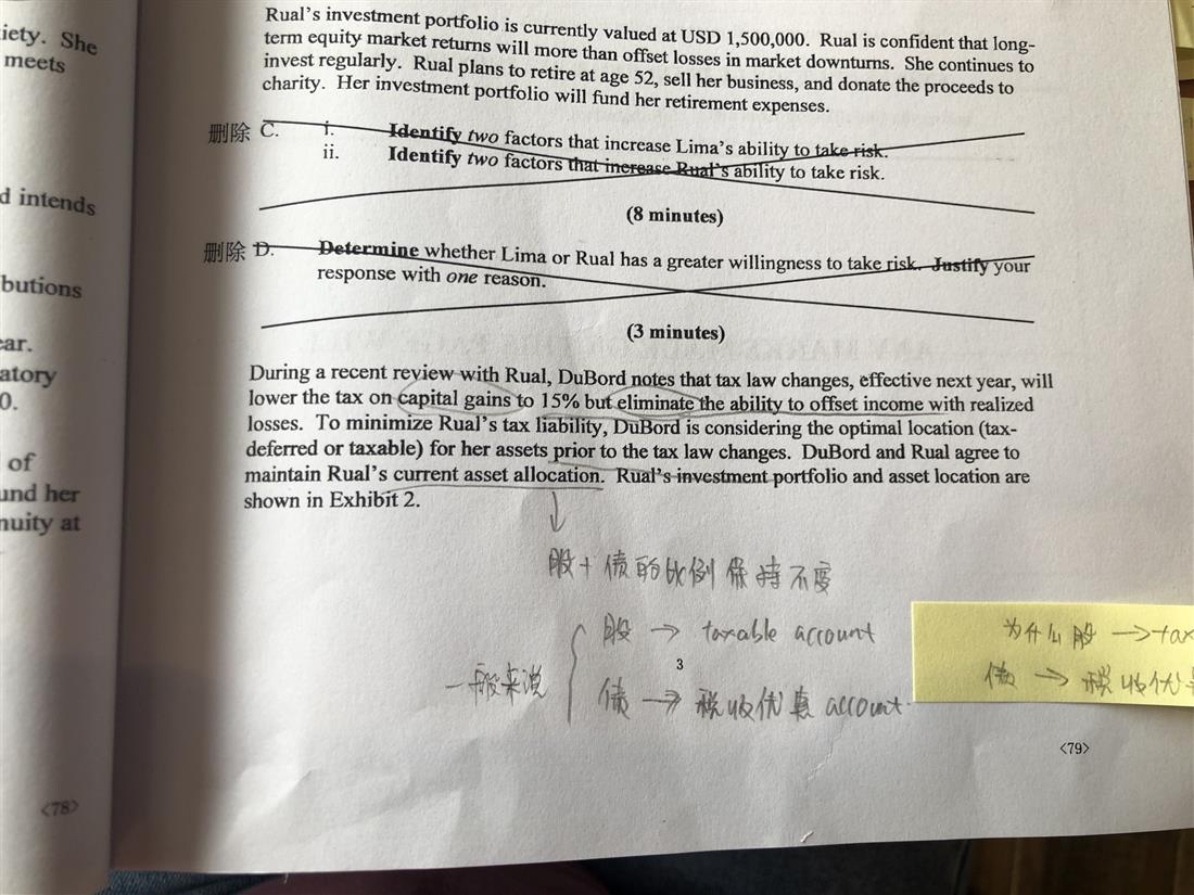 这道题Tcg^=Tincome是懂的,但是没听懂这个过程= = concentrated position上升5M,collar由于C执行了,loss了5M,然后这个loss的5M是可以在到期后用来抵税的,两者轧差用Tincome,之前0时刻交的C的税是Tcg和这个不一样,是这样理解吗? unless has sufficient other capital gains, she won't fully use those losses.这个的意思是,如果有其他的cg,这个5m的loss用来抵cg而不是income的,所以两者轧差用Tcg就不会有mismatch的意思吗? 还有最后一句话也没懂