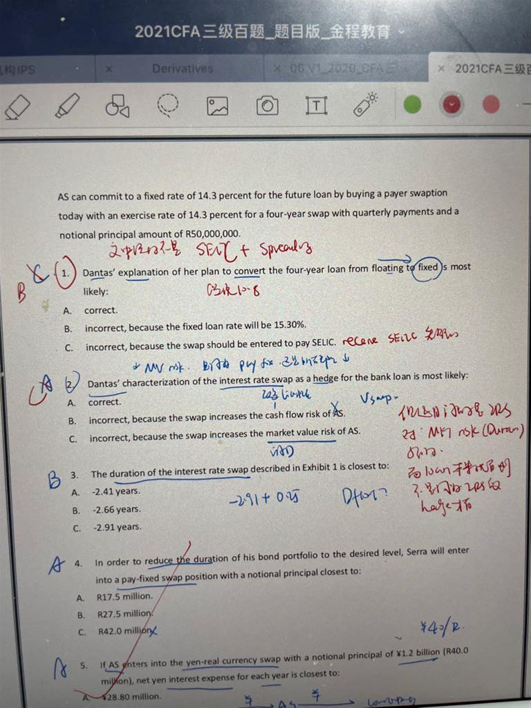 已回答百题Case1 1。文中说Loan的利息是SELC+Spread,没说10.8+spread啊,10.8只是Fix rate啊。哪里看出来SELC=10.8了? 2.题目问的是加入IRS以后对Duration(MKT risk的影响),但答案回答的是Loan对此的影响。可是Loan不是本来就存在吗?又不是加了IRS才有的。 谢谢老师