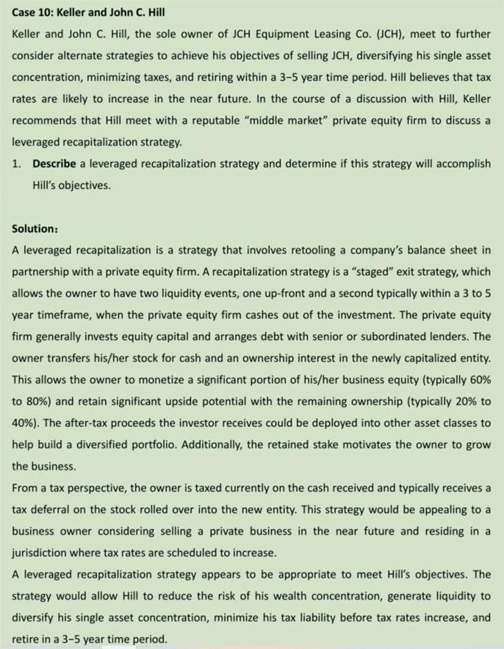 已回答这里对Leveraged recapitalization和staged exit strategy之间的区别有点糊涂了,之前我的理解是leveraged recapitalization是说比如PE出100MM买了一家公司100%的股权,然后通过公司贷款80MM,分红给自己,相当于用20MM就买了100%的股权,这和staged exit strategy是两个不同的策略。老师能再分别说明一下这两个策略到底是什么样么?这个题的意思是Leveraged recapitalization属于staged exit strategy?
