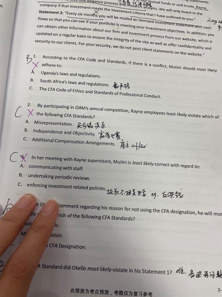 包含CFA三级传统在线课程相关提问答疑;