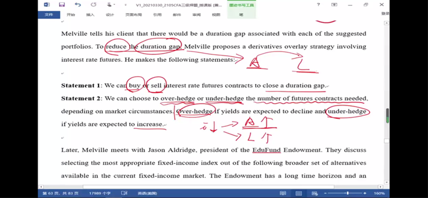 老师,statement2怎么理解啊?yield下降,价格上升,希望资产上升多一点,就overhedge,为啥呀