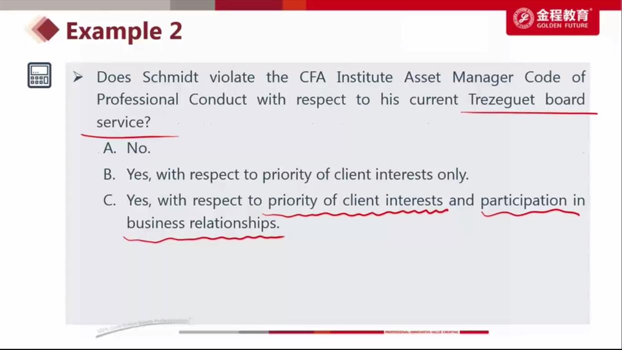 这个题不明白,因为我买了他们公司股票就有priority of client? 任董事和持股情况是都要披露吧。