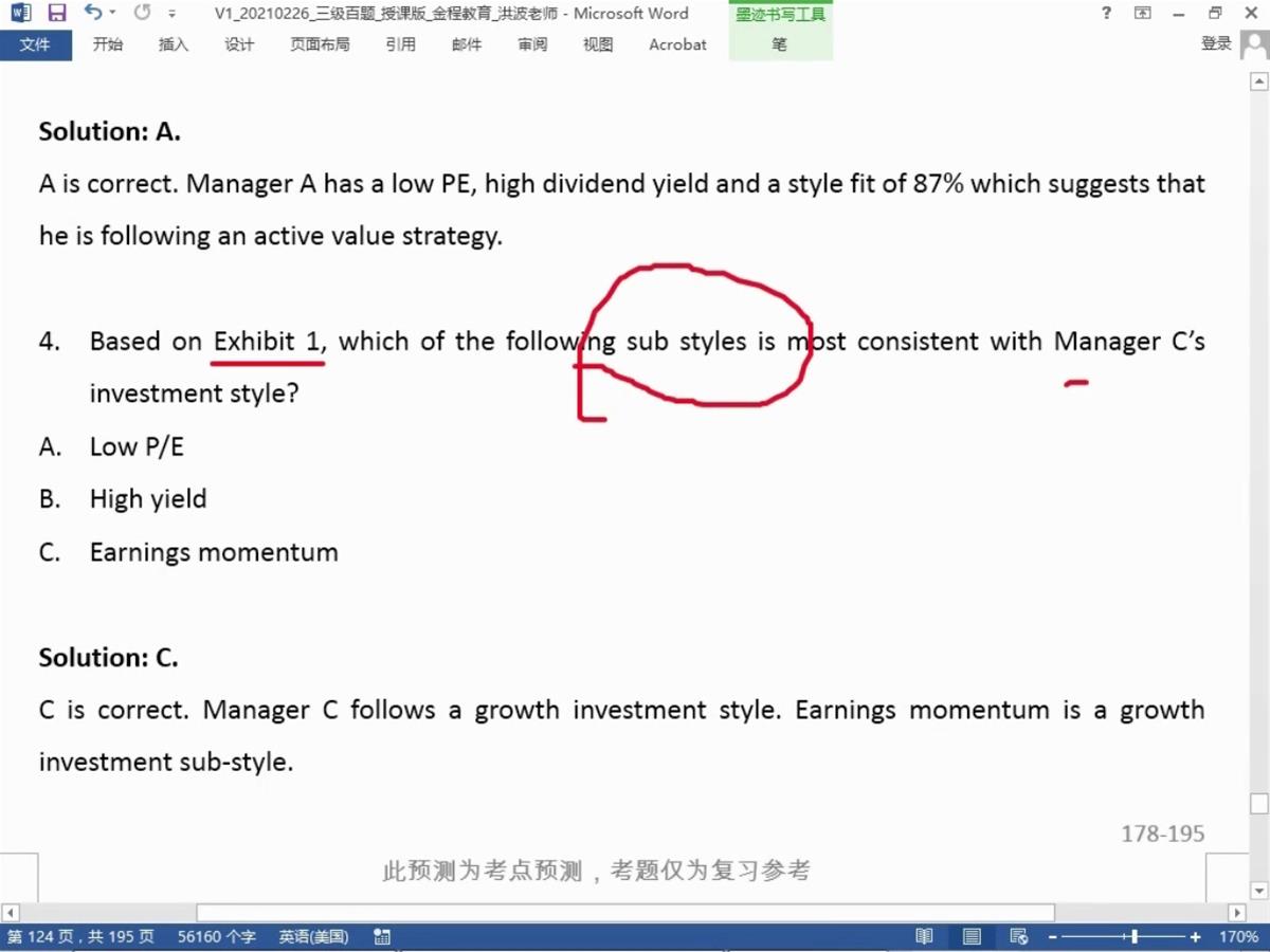包含CFA三级传统在线课程相关提问答疑;