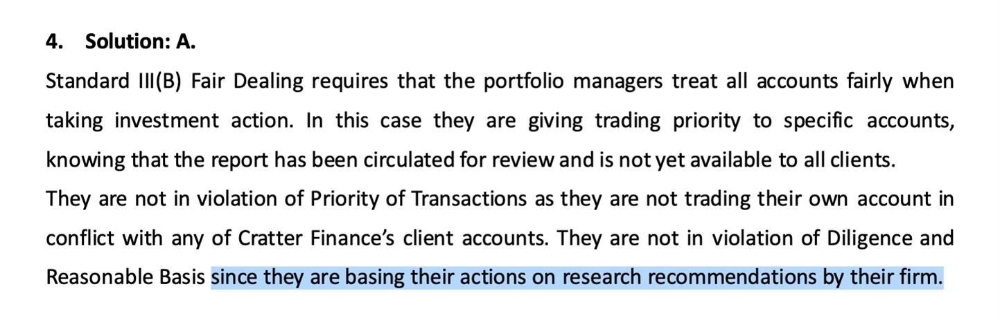 原版书课后题R2,1、第3题A选项,有利益冲突的话是不是也可以适用独立客观性条款,列入限制性清单不表达opinion呢?这样看A是不是也正确呢?2、第15题,用will表达观点错误是不是违反的V(B)与客户沟通,为何答案说违反的是I(C)不当陈述呢?3、第17题,I(A)说遵守准则和法律里更为严格的,而记录保存期限里有道题说的是法律5年,准则7年,如果有法律规定则不用看准则,I(A)和V(C)记录保存是否冲突呢