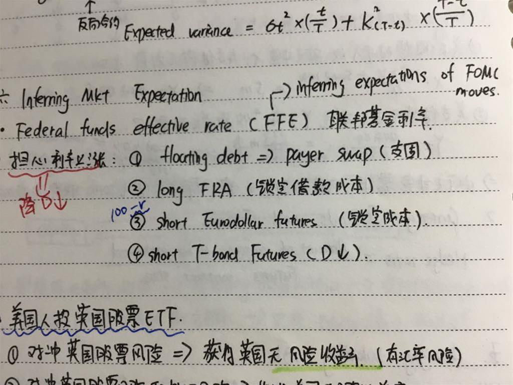 老师好,我记得我们讲过一个,“在害怕中赚钱”。就是害怕利率上涨,那就买call,使得上涨时赚钱。而这里,害怕利率上涨,是short 了一个future。这两个思路是对的吗?我记得好像有题是,担心利率上涨,long future,但是找不到了,老师有印象吗?