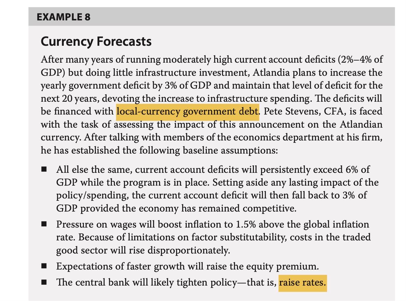 原版书reading11的example 8 的第三问?按照书中的公式,如果本国的短期利率和equity premium 增加,那么本币/外币的汇率增加,因该是本币贬值,为什么第三问说的是本部升值呢?