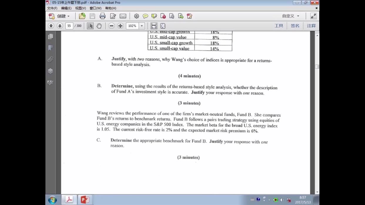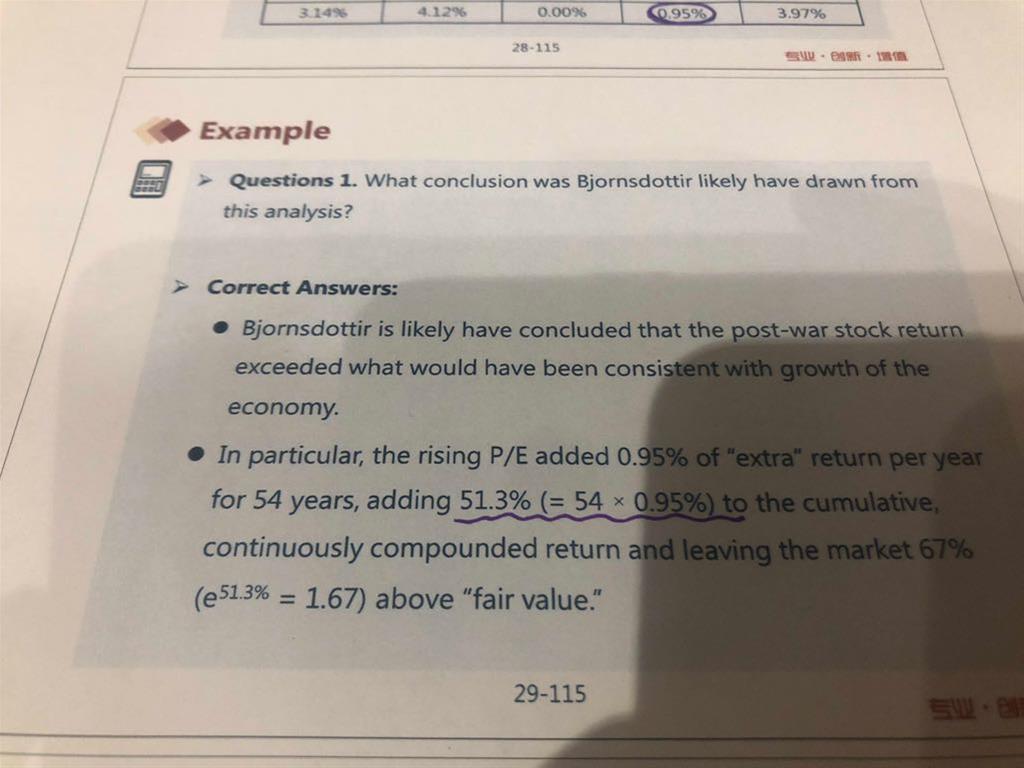 已回答原版书reading 33的example 9 mini-case A的: (1)第二问,equity的波动为什么不是从国债的波动低,标准差小的角度说,看公式应该是和资产的标准差大小正比的也? (2)第四问,分别给出的原因其中最后一个说,调整后的收益是增加的,这个改怎么理解呢?
