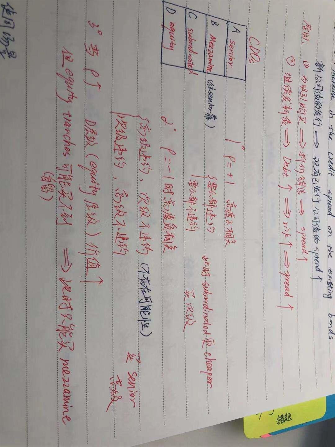 关于CDO 层级相关性不同购买选择: 如图第3小点 当相关性上升的时候,equity层级价值上升,但是通常这一层级都是自留的,所以买不到,因此退而求其次购买mezzamine层级。 那么,为何不买subordinated层级呢?
