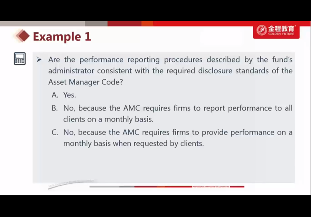 老师, AMC说至少季度汇报业绩,那C选项说月度为啥不对啊