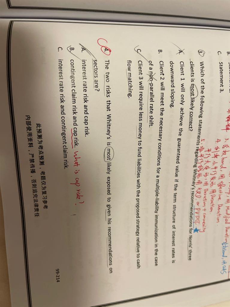 老师,百题fixed income第一个case的第四题里选项中的cap risk是指什么啊?