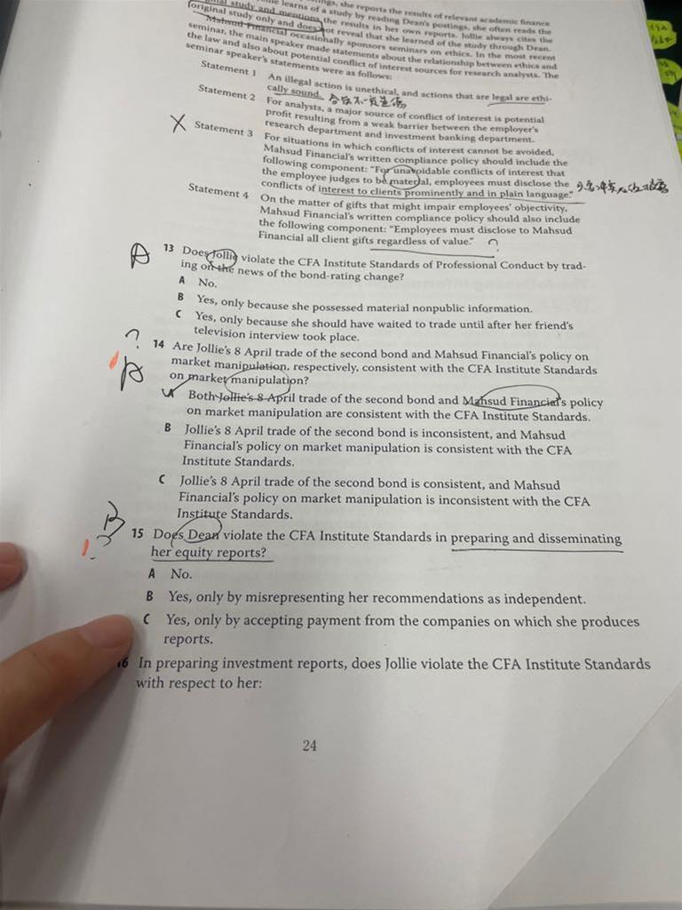 包含CFA三级传统在线课程相关提问答疑;