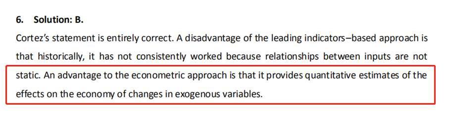 已回答老师,百题的CME部分case5的第六题,为什么econometric modeling的优点这个表述是对的?我看笔记上说econometric modeling的缺点是无法预测turning pointing啊