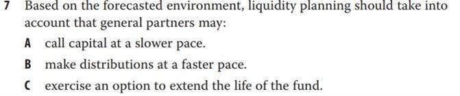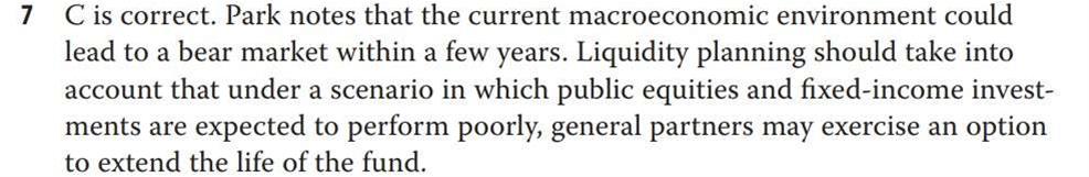 第27章课后题第7题。文中谈到,预计市场将会陷入萧条(出现熊市)。按理来说,在这种情况下,投资机会更少,GP应该会投入更少资金,所以我选择了选项A。但正确选项是C,也就是说,在宏观经济整体不景气的情况下,私募股权基金的GP会选择延期。个人感觉选项A和选项C并不矛盾,似乎两个都成立。为何选项A不对呢?谢谢!