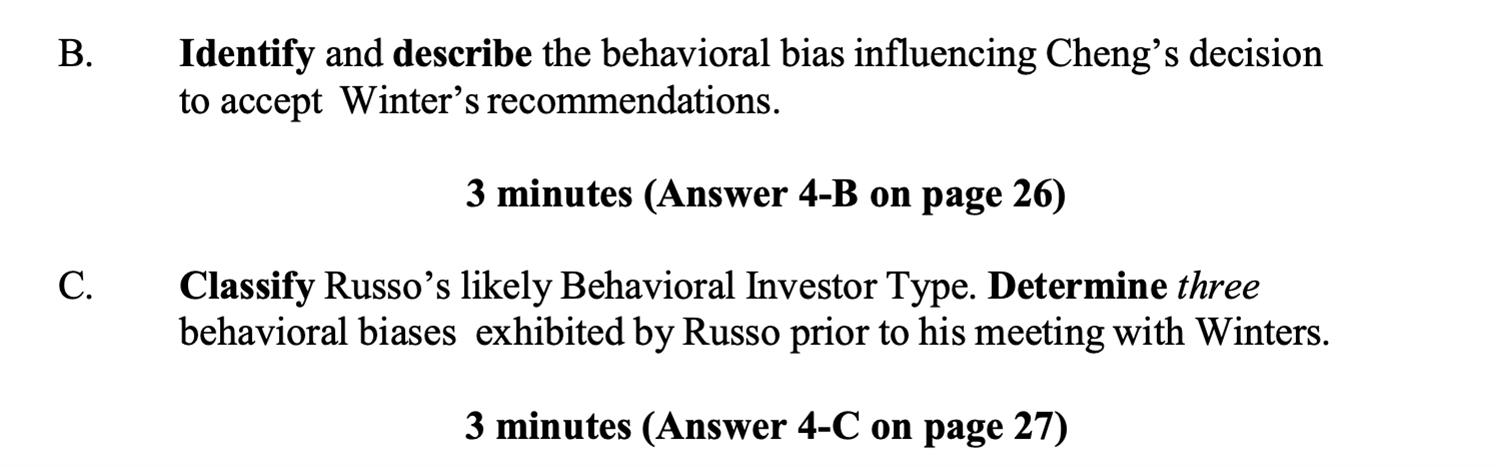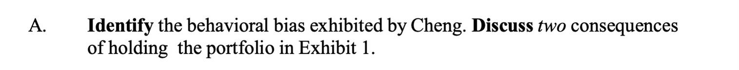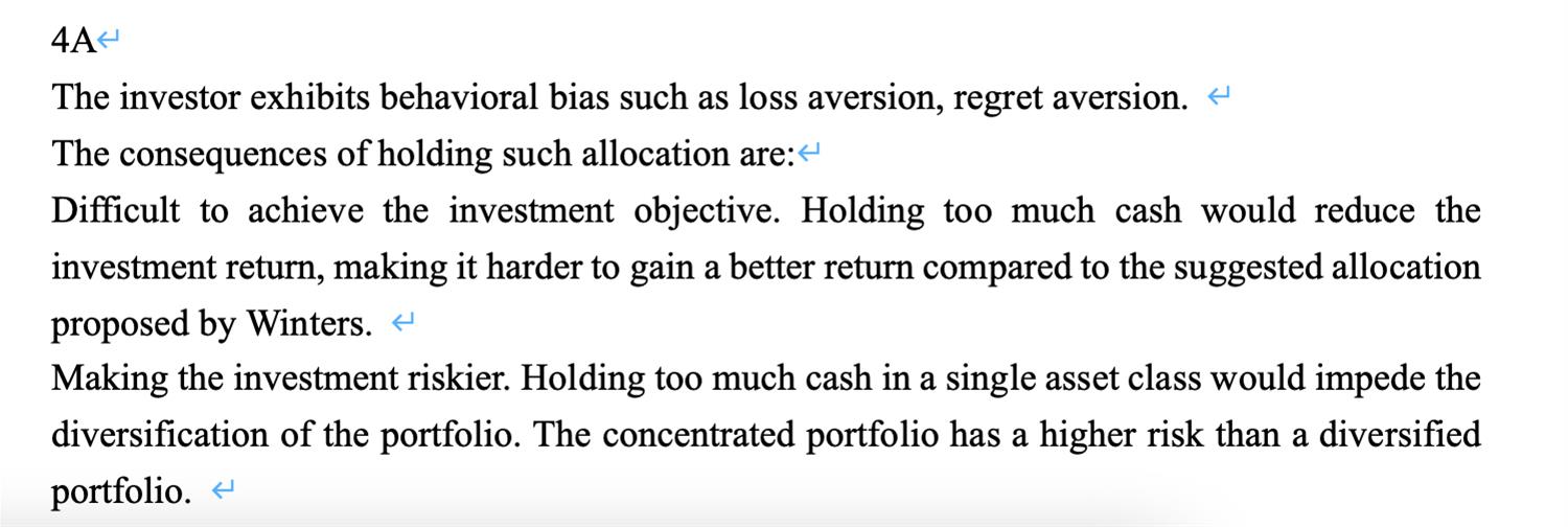 模考第二套 第四大问里的A 为什么这里答案是naive diversification 我填的bias是loss aversion和regret aversion 而且题目问的是holding such portfolio的后果,答案写的却是naive diversification的后果。 另外,也请老师帮我看看我写的回答,有错误的地方烦请指正,谢谢老师!