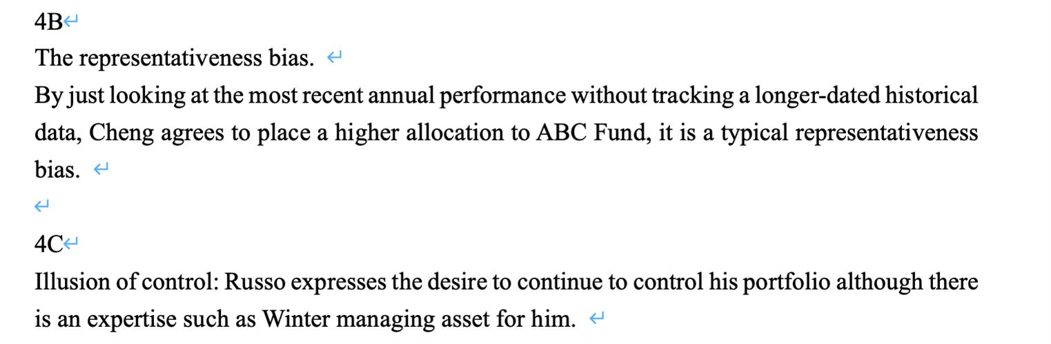 模考2的第四大问 为什么B的答案是framing bias?我觉得应该是representative bias吧? 另外C问里要写三个bias,我写的其中之一是illusion of control可以吗?因为原文里有desire to maintain control这句话,麻烦老师帮我看看。