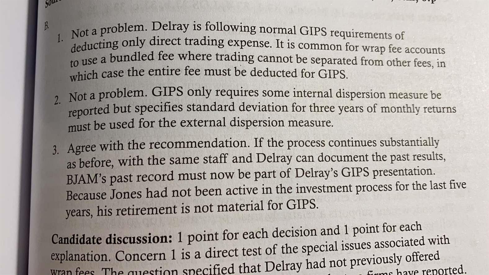 这里不太明白为什么第二点是符合GIPS的要求的呢?我的理解是在计算完36个月的monthly return的standard deviation之后不是应该要做一个年化的操作,然后report这个年化的标准差么?