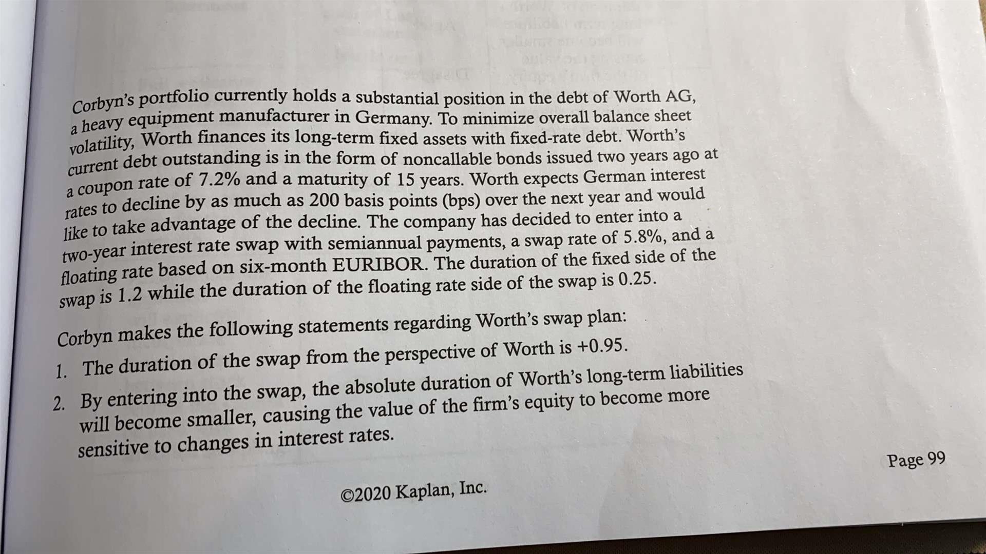 这里对为什么第二个statement是对的不是特别理解,我的理解是这个swap会增加资产端的duration,但为什么说会reduce the absolute duration of the net liabilities呢?而且为什么就causing the value of the firm's equity to become more sensitive to changes in interest rates呢?