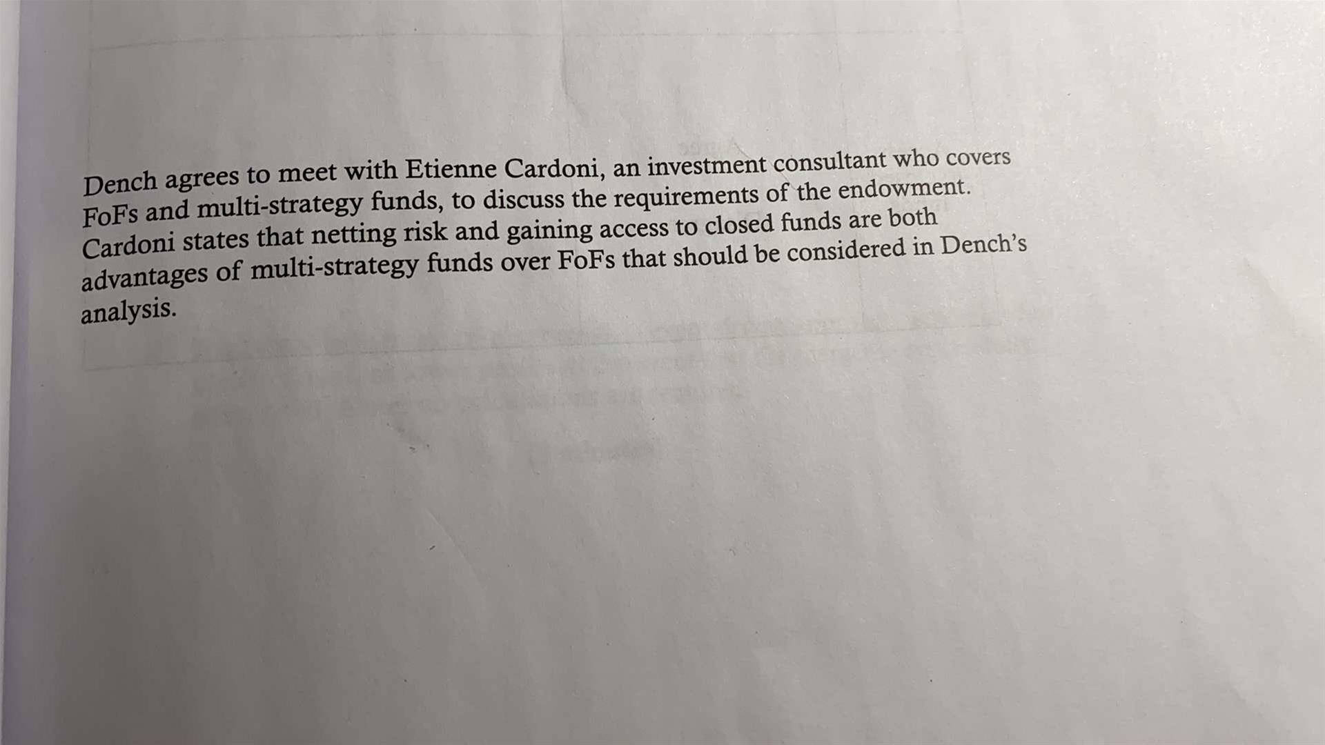 这个题不太明白为什么netting risk选disagree,而access to closed fund选agree呢?没有netting risk是multi-strategy funds over FOF的优点,不应该是选agree么?multi strategy不能access to closed fund,这是multi strategy over FOF的缺点,不应该选disagree么,这为什么是正好相反的呢,哪里理解得不对么?