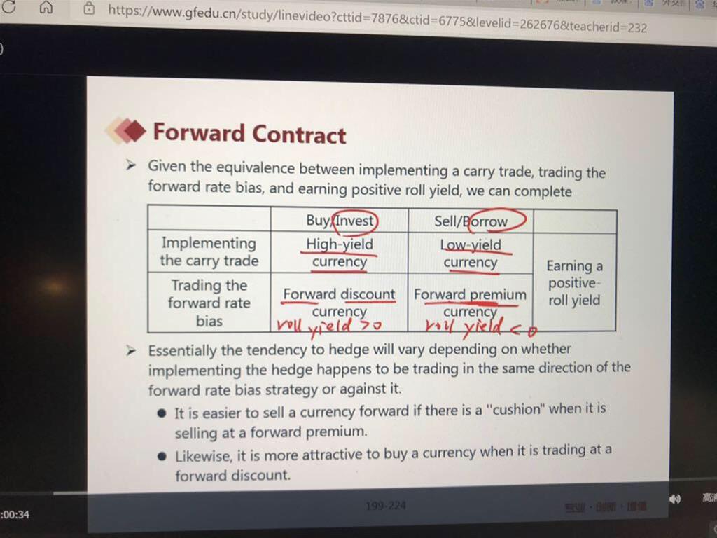 forward discount 的roll yield大于0?这个结论是怎么来的? roll yield 公式F-S/S,我认为forward premium currency的roll yield>0。 谢谢老师