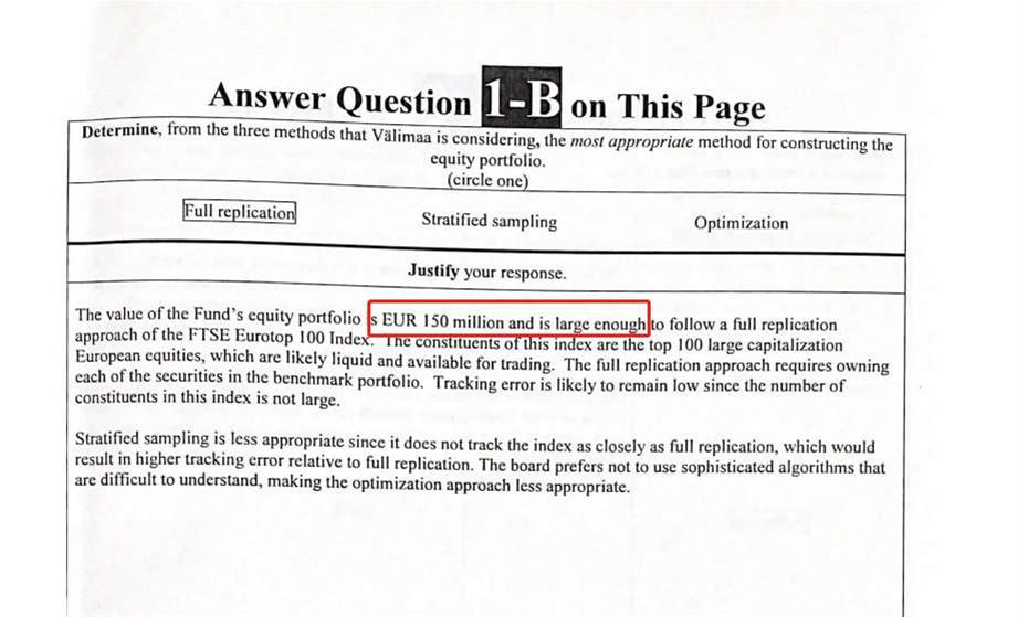 已回答老师,equity的2018年真题,Q1的B问,答案中提到150 million的体量是large enough去采用full replication的,请问这个数字有没有什么具体界定?多少million算large?