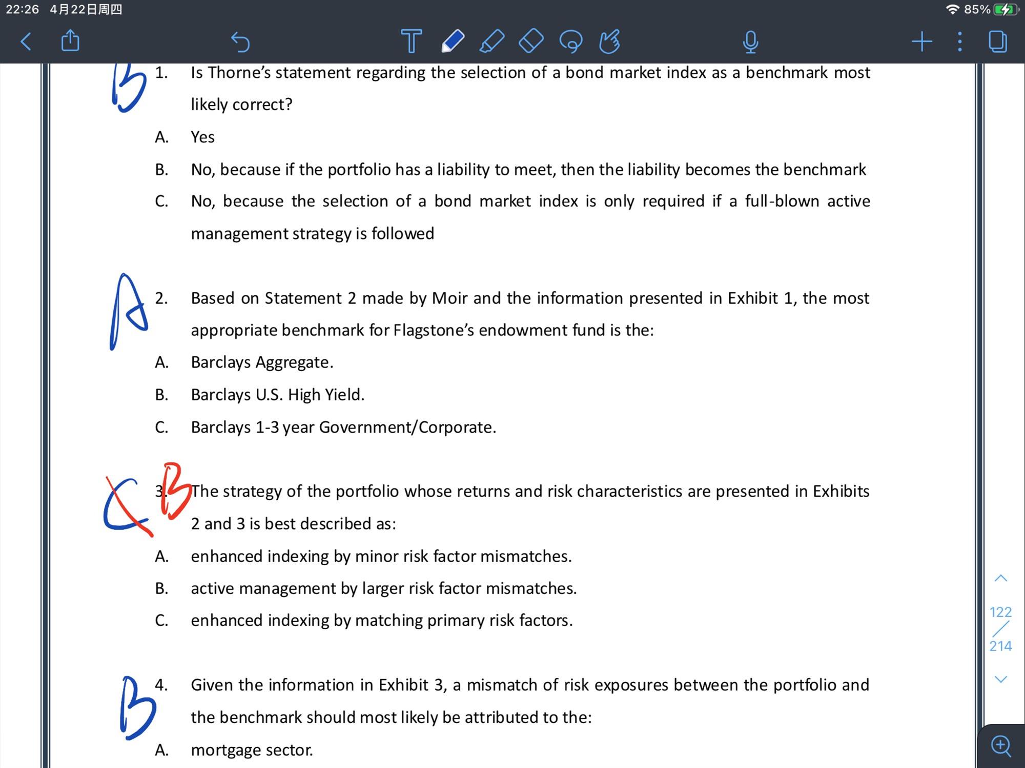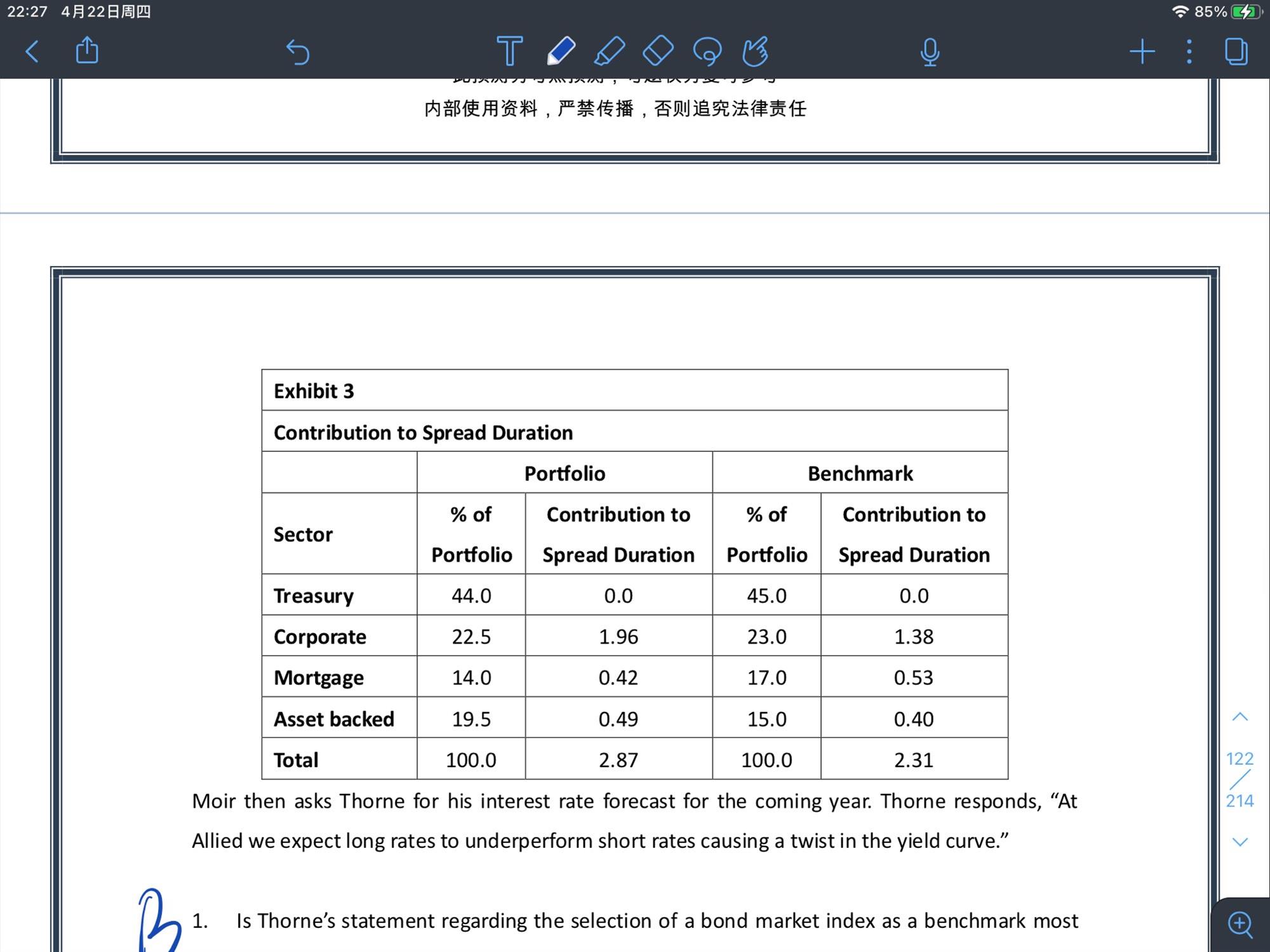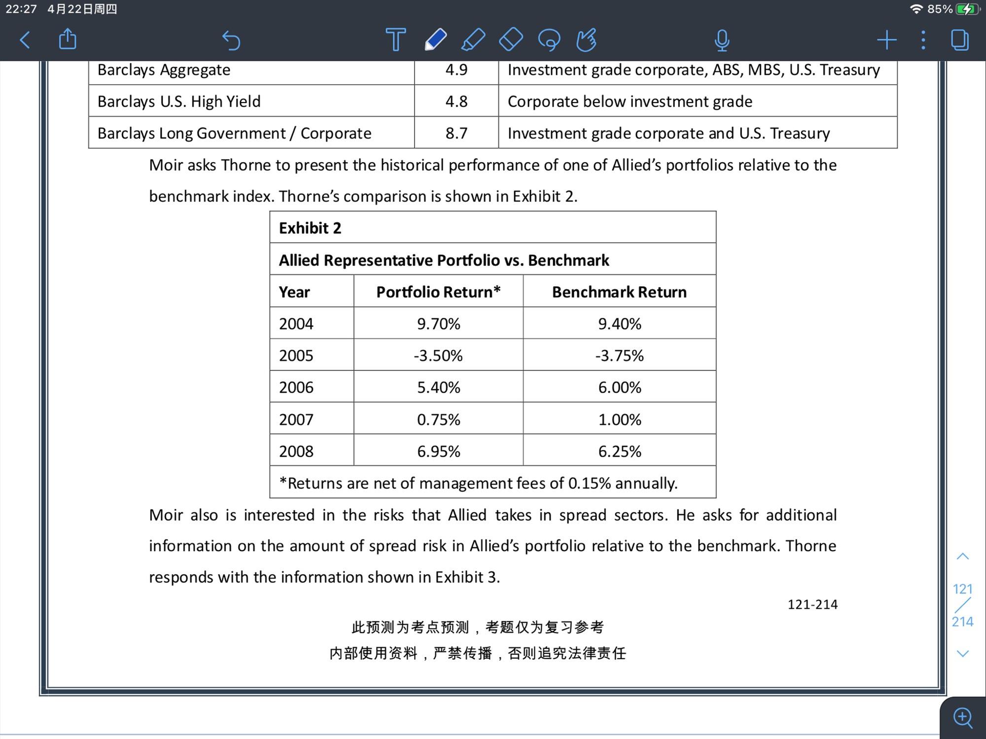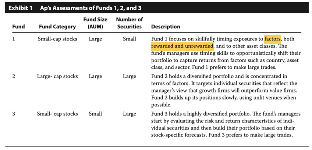 已回答原版书P547 Q1 为什么选的是alpha skill,而不是rewarded factor weighting?我看文本的描述里都是在讲Fund1通过factor来获得收益的。难道是因为他既用了rewarded又用了unrewarded factor吗?