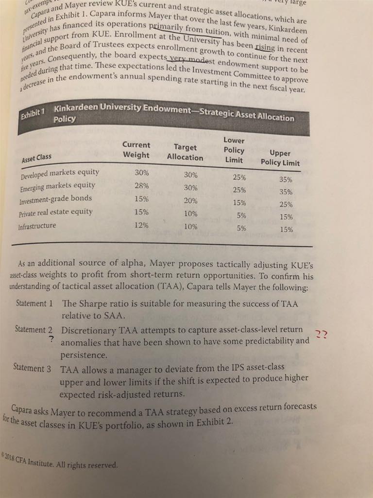 已回答百题段_SS5 Asset Allocation_case3 Angelica Mukasa,第三题。这里说不选emerging market equities的原因是和global equity重复了,但百题段_SS5 Asset Allocation_case1 Windsong,第六题就说的是“emerging markets equites should be considered a distinct asset class as they differ from other equites in terms of diversification potential, information efficiency, corporate governance, taxation and currency convertibility”,这到底以哪个为准呢?
