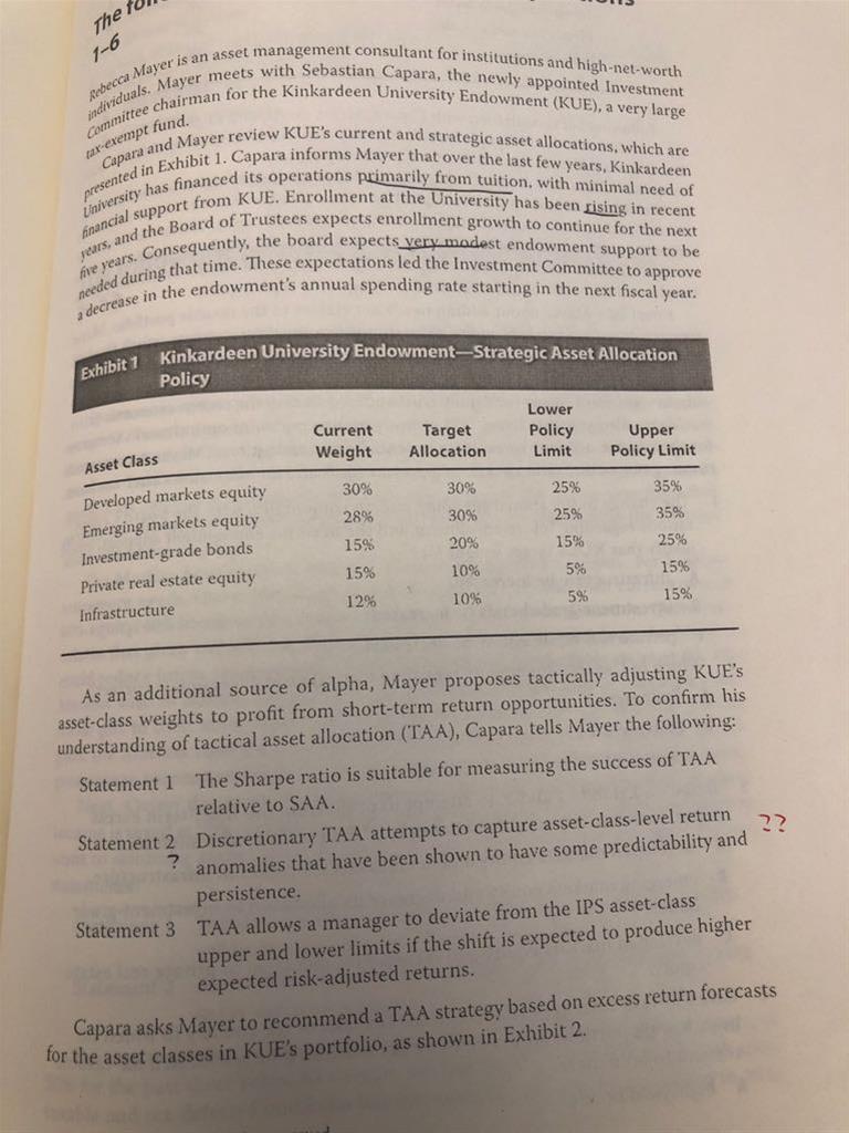 已回答百题段_SS5 Asset Allocation_case2 Noir Rashwan,第六题。对这题有几个问题 1. global real estate values are showings signs of overvaluation in some markets,那reduce real estate不是正确的操作吗? 2. 对这里的逻辑我有点乱,比如这里题干里说,短期的利率要上升,答案是说money market funds more attractive,这背后的逻辑是说利率上升,所以money market被低估了,所以我应该买入对吧?但我的理解是,题目给出的是short term capital market expectation,就是近期市场的变化趋势,那我现在如果多配短期的money market fund,在我买入之后短期利息上涨,我不是亏损了么?