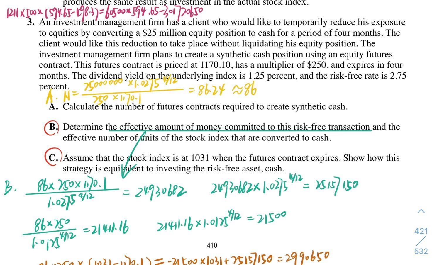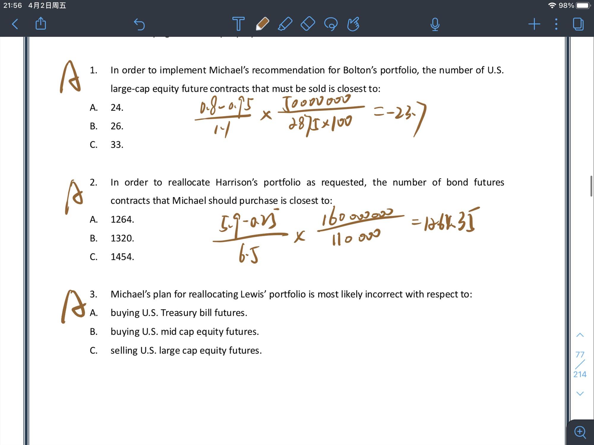 老师好,第四题的A问,先把beta降到0的那一步,为什么不是用0-1.15,B问要算total value,为什么是计算future的profit,不是用364*164005来计算value?