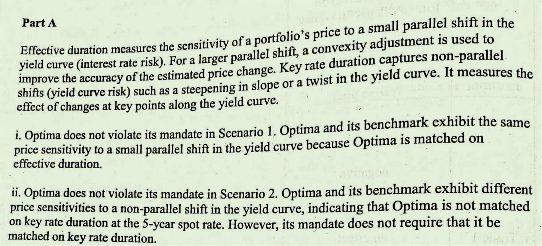 老师我想问下像这种题目,问的就是scenario 1和2有没有违反mandate,而答案上第一段是描述了effective duration是什么,我在考试的时候需要描述第一段的那个内容么?还是可以直接就回答scenario 1和2是否违反?