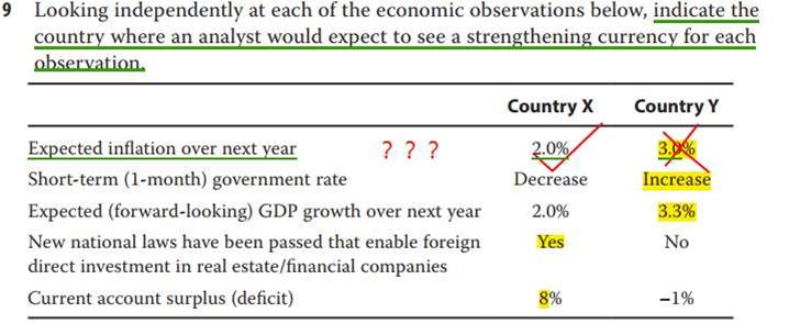 - 第5题,从经济学公式X-M=(S-I)+(T-G)来看,如果经常账户赤字增加,不是意味着该国投资大于储蓄,或政府支出大于税收么,那么整体环境应该是好的,应该有利于资本的流入吧?为什么答案是反过来去赤字减少或盈余的国家呢?