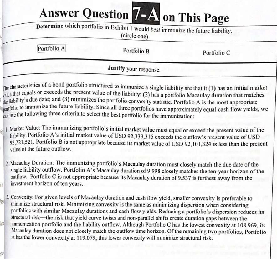 老师,固守的2018年真题Q7的A问,问哪个portfolio最适合immunization,答案中先把免疫策略的三个条件列出来了,然后再挨个分析,这个顺序感觉其实只写关键点也很费时间,我想问一下在考试中,这类题回答逻辑应该怎么样呢?