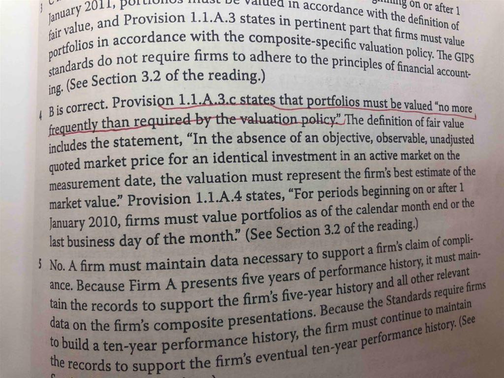 老师好,课后题P384 第4题 B选项涉及到的条款“no more frequently than required by the valuation policy” 在林正老师基础课PPT的哪一页?我翻了半天没找着这个条款