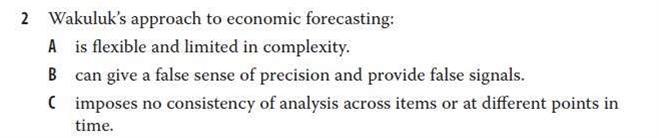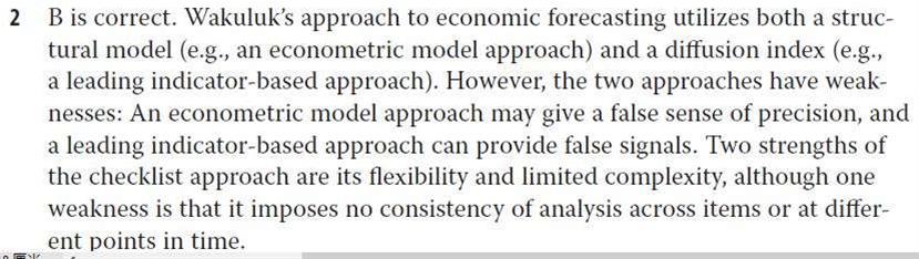 第10章课后题第2题。在分析师预测未来经济走势的方法中,经济指标法和问卷调查法的缺点里都有“不一致性”,但经济指标法中的“不一致性”不包括不同时间点进行预测产生的不一致,因为所有指标都是先行指标,其不一致性表现为不同指标预测结果的不一致。而问卷调查法中的不一致性则包括在不同时间点进行调查时,结果的不一致。可以这么理解吧?
