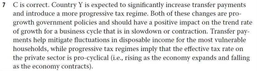 第10章课后题第7题。正确答案说明政府采取了积极的财政政策,增加了财政赤字。其中,转移支付属于福利支出,是政府支出的一部分。它的增加表明了政府支出的增加。但“more progressive tax regime”为什么代表了政府收入(税收)的减少呢?progressive tax的意思是累进制课税,而“更加累进制的课税”,是说边际税率的分级数量增加了吗?