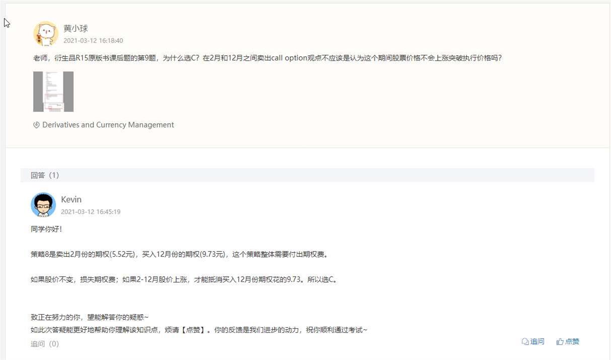 已回答老师,还是衍生品R15课后题的第9题,卖出2月份call并买入12月份的call,也就是2-12月股票价格无论上涨多少,对手方都可以以2月份call的执行价格买stock,那为什么选C呢?应该只有12月之后股票价格上涨才能cover掉12月份call的premium费用啊