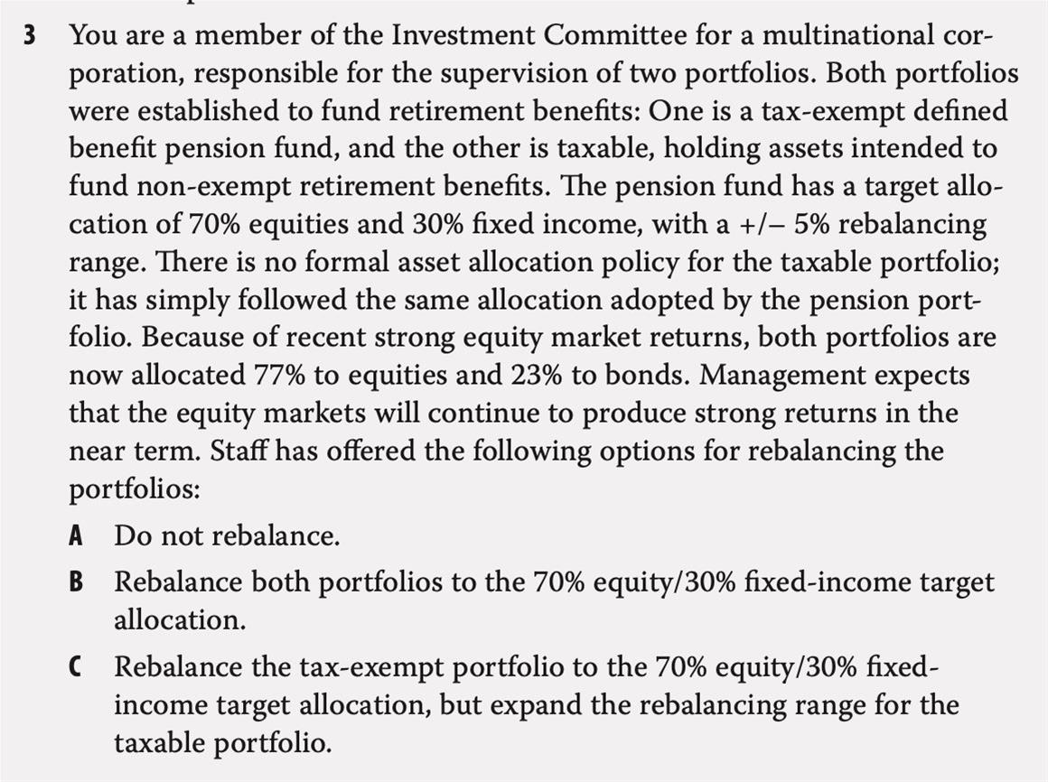 老师,机构投资者里的原版书课后题第4、5和7题有疑问。 第4题,我的理解是DB这种养老金本来的RT就是below average的,既是占比小、overfunded,风险承受能力依然是小的吧,我觉得风险承受源自于DB是养老金这种特性而不是是不是overfunded,所以选错了,不知道这样理解哪里错了请老师指点;第5题,援引的原文中的两个法案,这种法案主要内容是不是不用记的,看题信息去选就可以的呢?第7题的理解是文章提到因为经验不足所以建议用外部资源管理另类投资,然后给了三个配置组合,那不应该是说选配置另类最大的么,为什么不考虑建议而是根据经验有限选另类配置低的了呢?谢谢老师