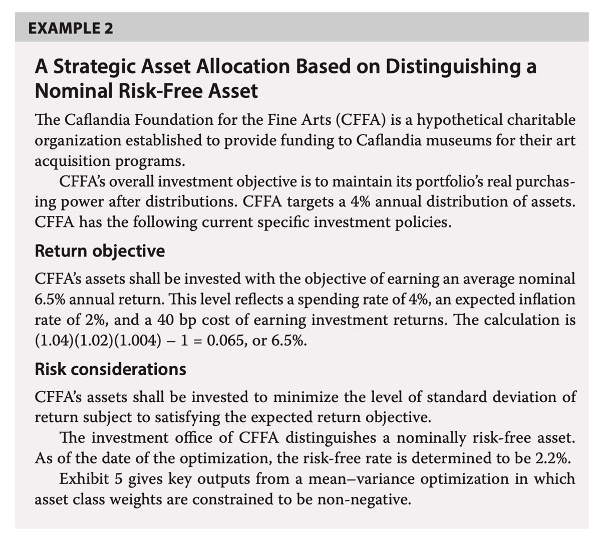 已回答老师,原版书reading13 的第74页的example 的 risk consideration: (1)为什么加入的是组合4 和无风险的资产组合,而不是4和5? (2)为什么有的时候加入无风险资产的权重为负数,有些时候为正数?