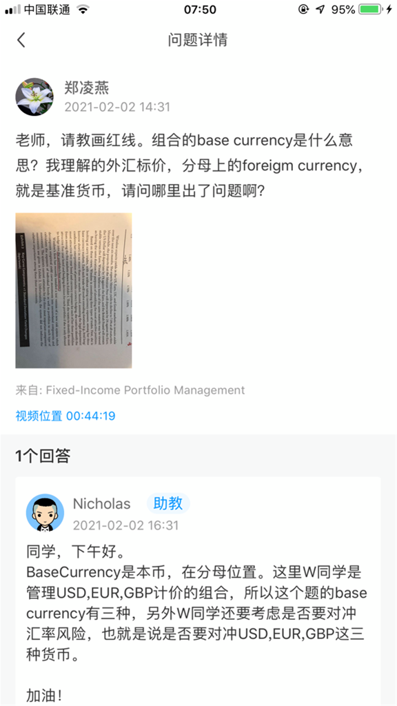 老师,关于本题解答,是nicholas老师提供的,我还是看不懂。抱歉 base currency不是在分母位置的考察对象,是外币吗?为什么说是本币呢?分子上的price currency才是本币,也就是标价货币啊?