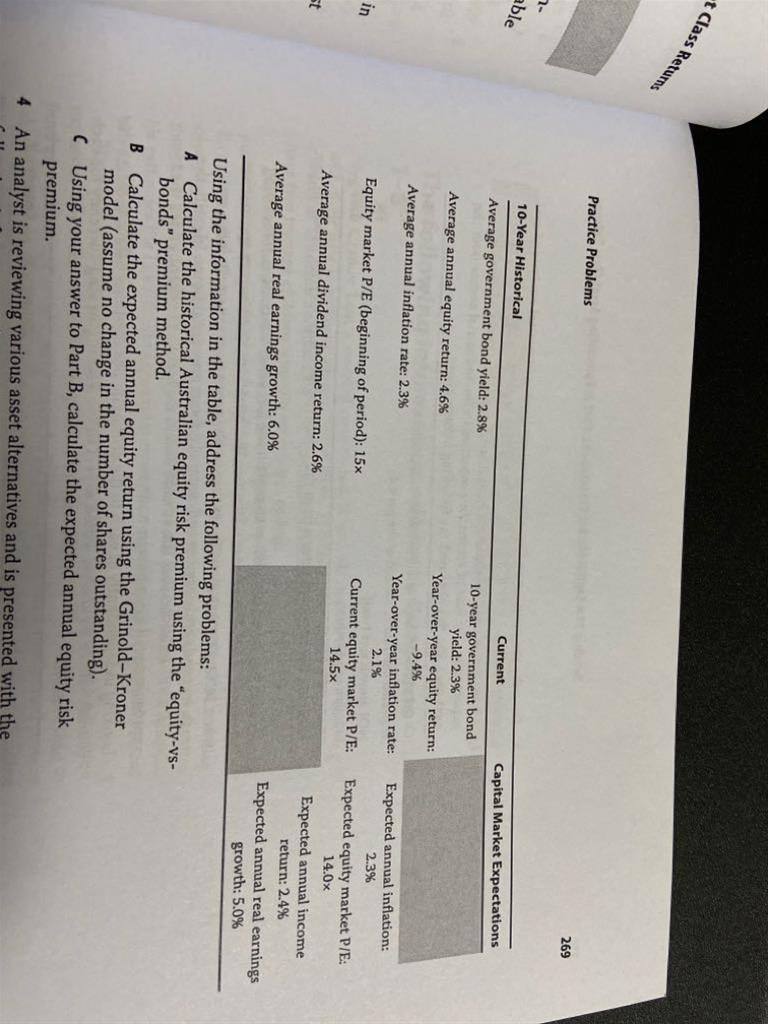 已回答R11第三题A,为什么算equity premium的时候不用考虑div income?即CG 4.6% +div 2.6% - bond 2.8%? 第三题C,为什么算风险溢价是用expect 的equity - current 的bond?不应该取同一时点么?